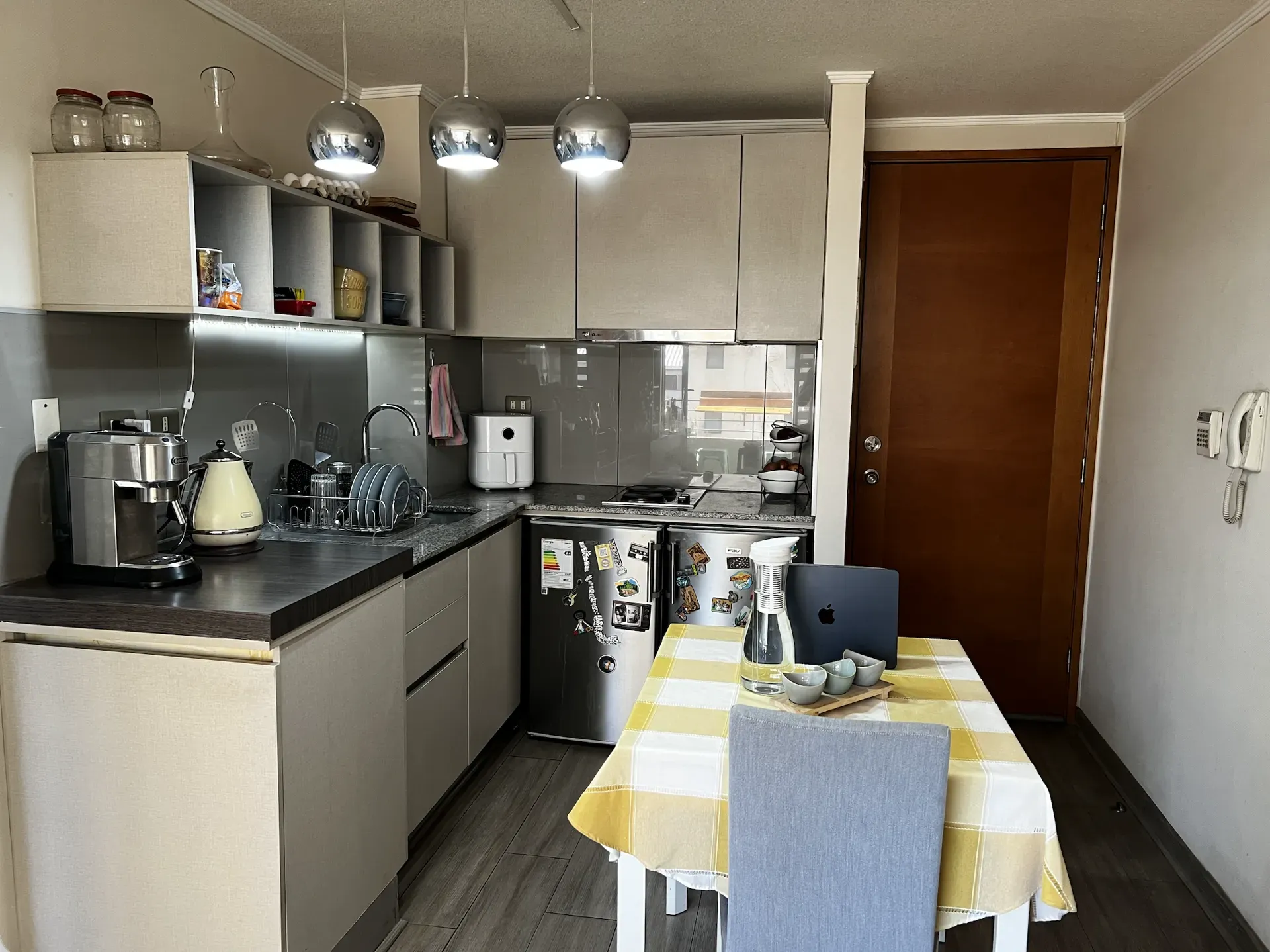 El departamento incluye cocina de concepto abierto, cortinas roller instaladas y ventanas termo panel, además de conexión para lavadora en el baño.